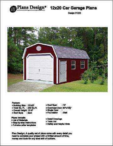 12′ X 20′ Barn/gambrel Shed/garage Project Plans -Design #31220
