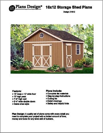 16′ X 12′ Gable Storage Shed Project Plans -Design #21612