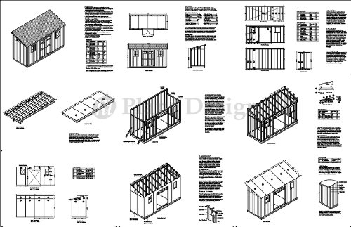 6′ x 16′ Deluxe Shed Plans, Lean To Roof Style Design # D0616L, Material List and Step By Step Included