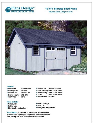 How to Build a Storage Shed 12′ x 14′ Reverse Gable Roof Style Design # D1214G, Material List Included